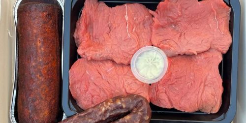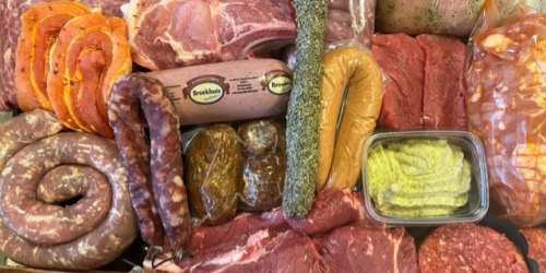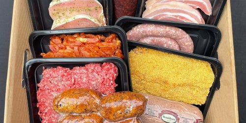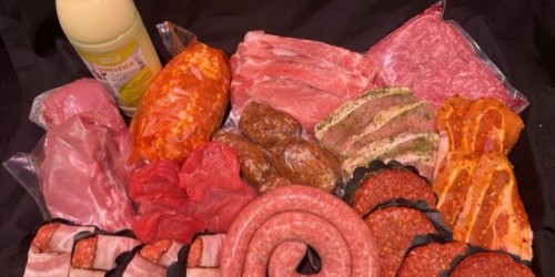 Varkenshaas, grillworst, gehaktballen, droge worst, biefstukken.